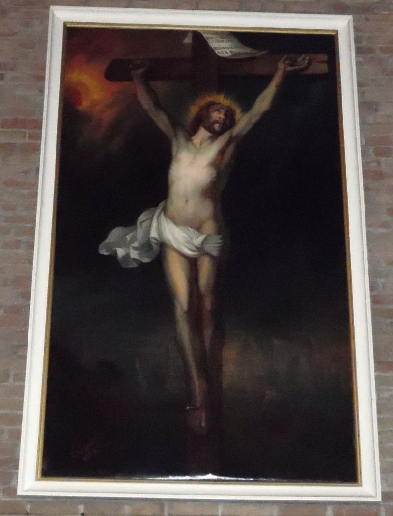 Op de achtergrond hangt nog het schilderij "Christus aan het kruis"