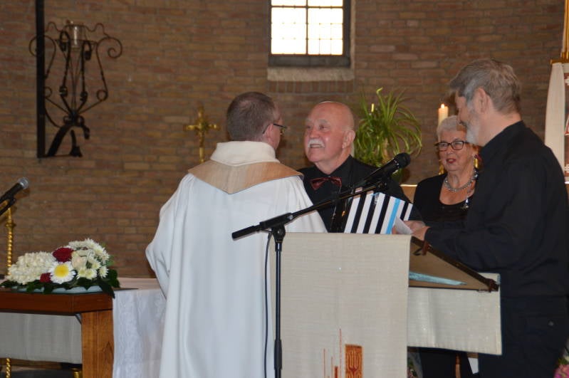 Tijdens de dienst, zondagochtend, werd van Dorst in het zonnetje gezet door pastoor